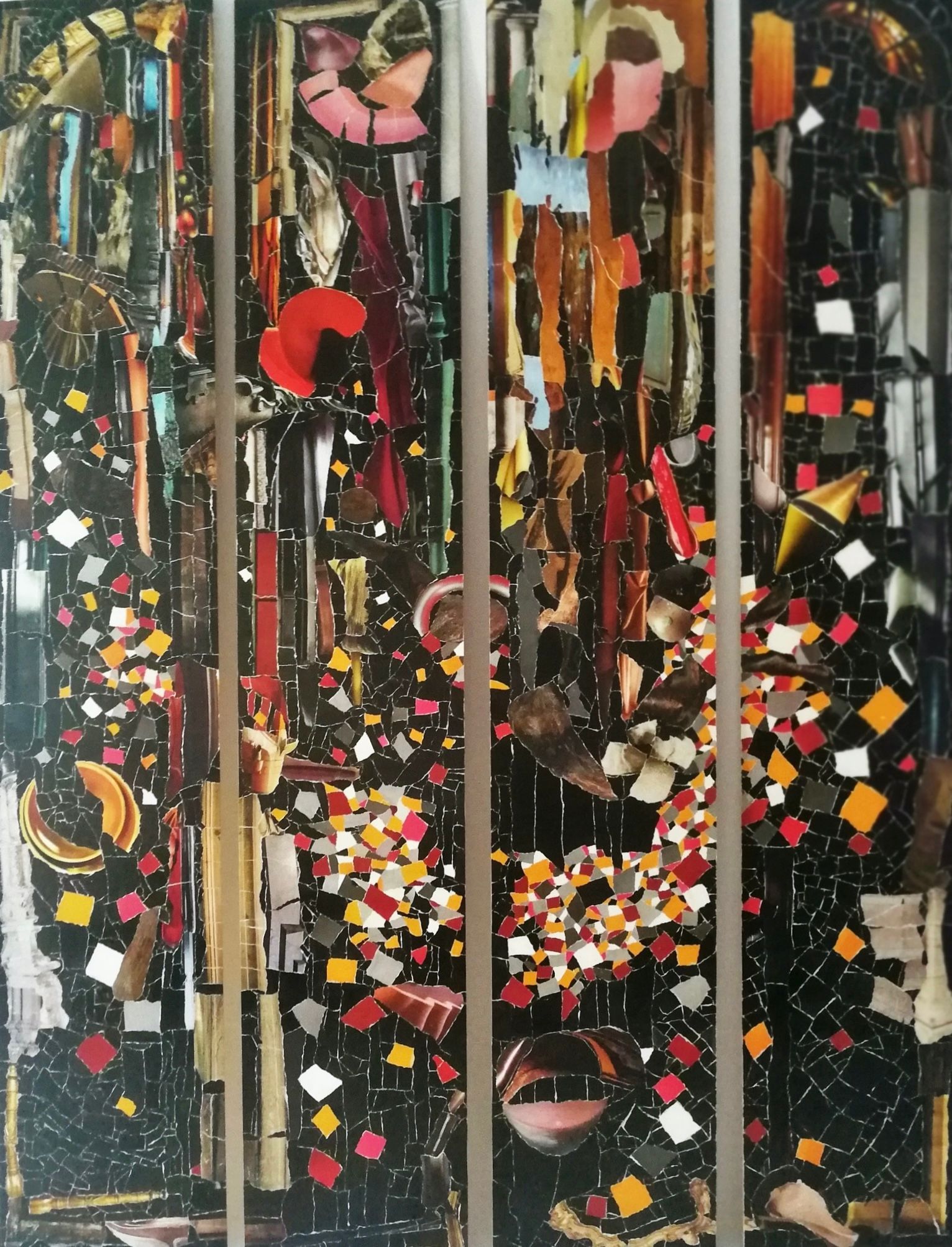 mixed media / paper on wood,
